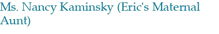 I only knew my Aunt Nancy a little bit as she lived in Indiana and our family lived in Texas. She raised two wonderful children, my cousins Bill Sutton and Linda Sutton Moll. My fondest memory of her is when we traveled to Indiana for her marriage to Lou Kaminski (the gentleman in the photo) and seeing layer upon layers of books throughout the house, rows tall but also deep. Though she and I disagreed on the entertainment value of Charles Dickens or Henry James, we both had a deep love of language and books. I hope she is looking down on April and I in joy for our marriage.